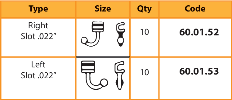Lingual Buttons are available in bondable and weldable form. This can be used for elastic and ligature wire retention, for improving rotation, traction and retraction movements.