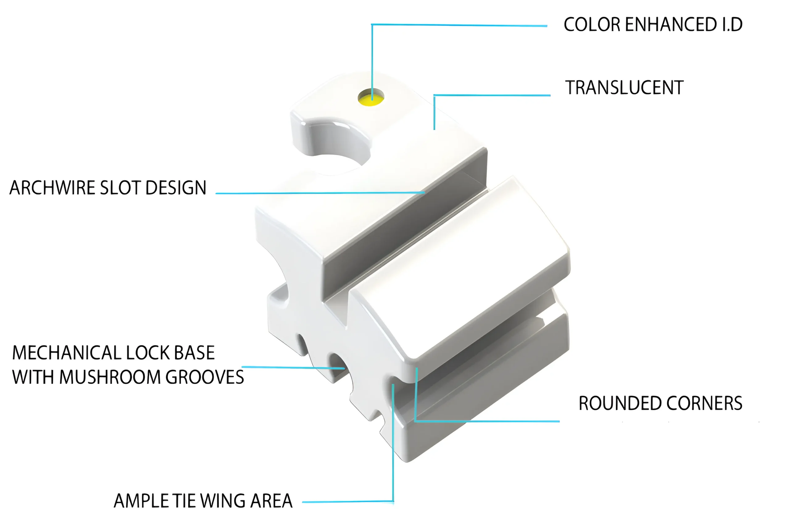 - Dove tailed grooves on the bracket base allows excellent adhesion of the bracket base to the tooth surface.