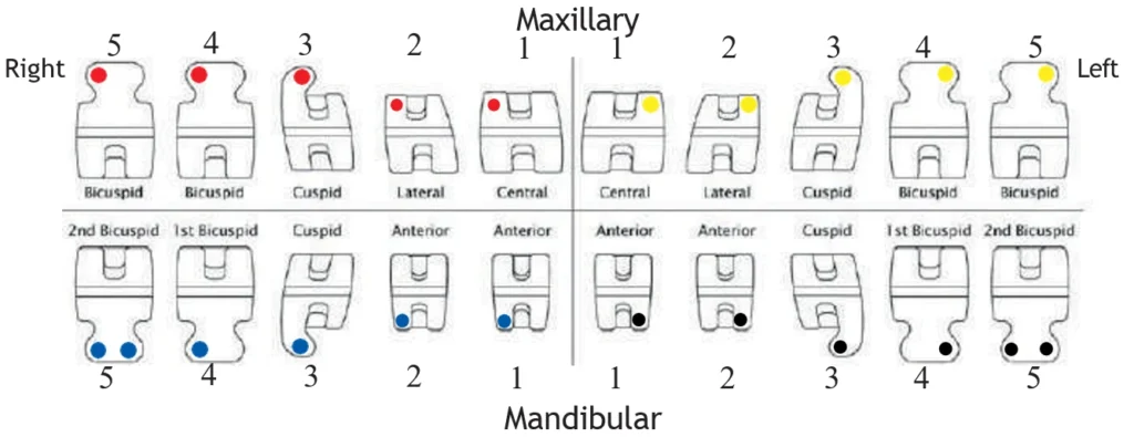 - Colour coded ID dot which are removable, make identification and placement of brackets on the teeth more convenient.