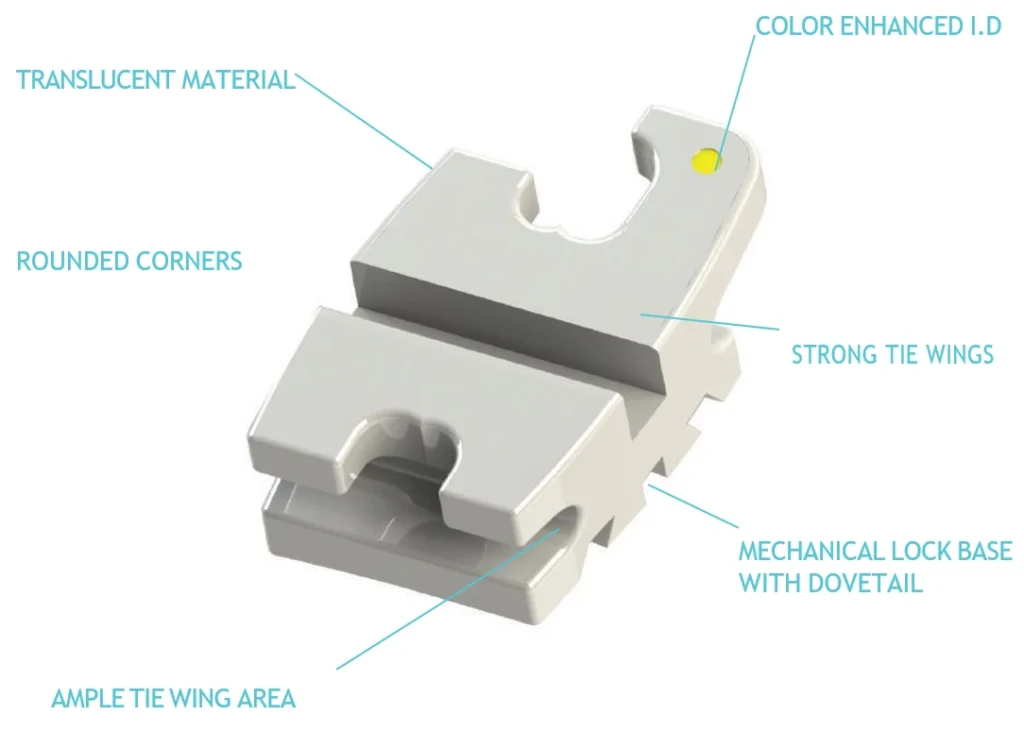 - Ligation process is highly reliable and smooth due to contoured tie wings and ample tie wing areas of the bracket.